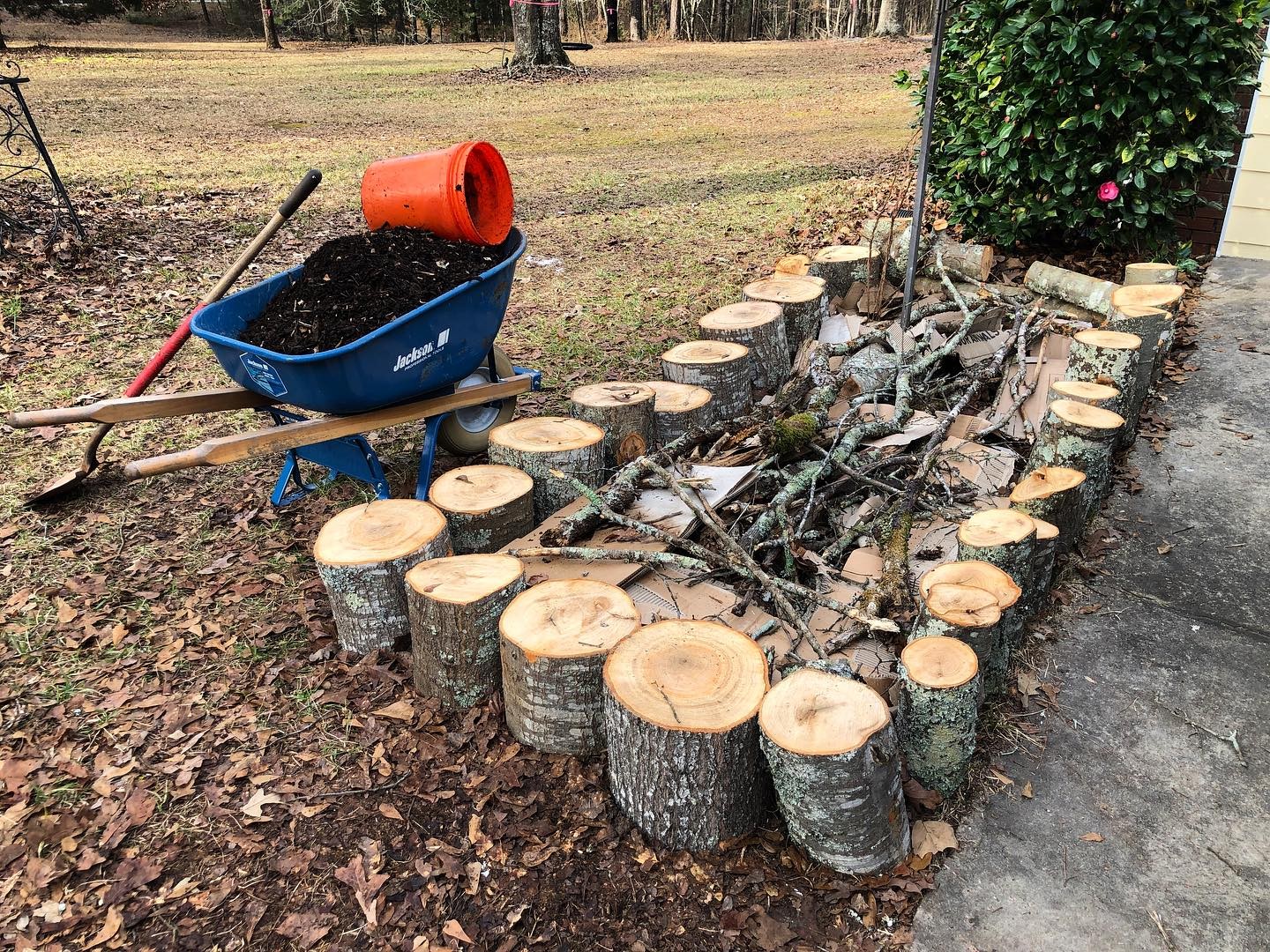 Today I made a garden bed for my kitchen herbs using yard waste and rotting wood chips.
