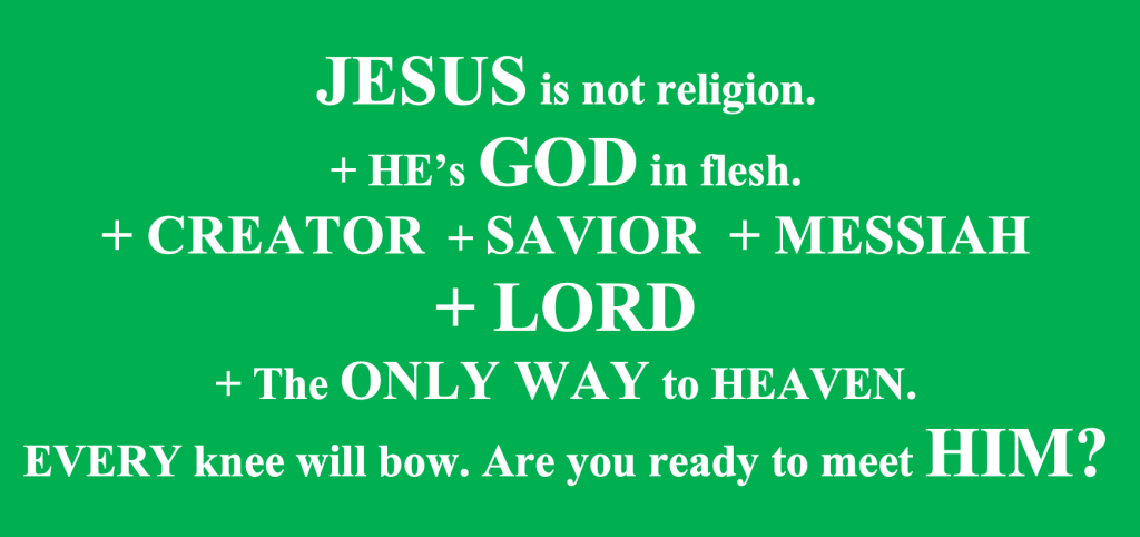 JESUS is not religion. He’s King of Kings and Lord of Lords. Every knee will bow to Him. Surrender now to the one who loved you so much He died to save you for eternity. Believe that His death, burial, and resurrection are the only way you’re reconciled to God. #Gospel