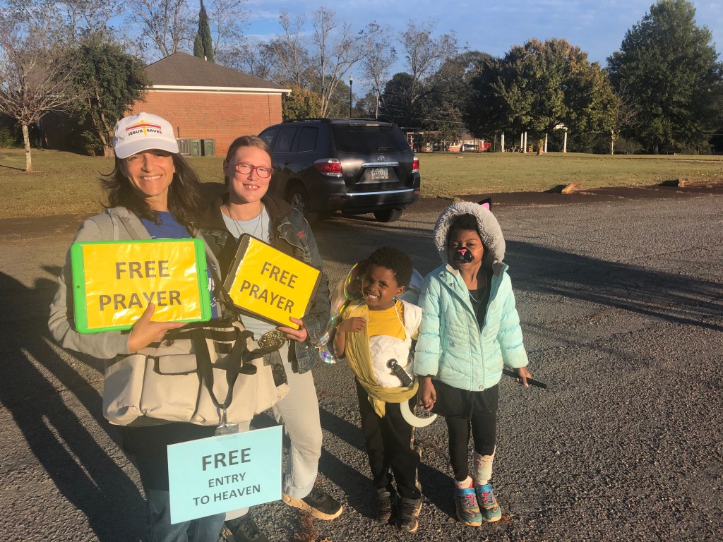 -2 Professions of faith at a street fair -3 Professions at a local campus -3 Professions at our Prayer Tent at the Maytag in Griffin -1 Profession at Public Library -A Halloween evening filled with Gospel conversations, prayers for our neighbors, and Gospel tract distribution.