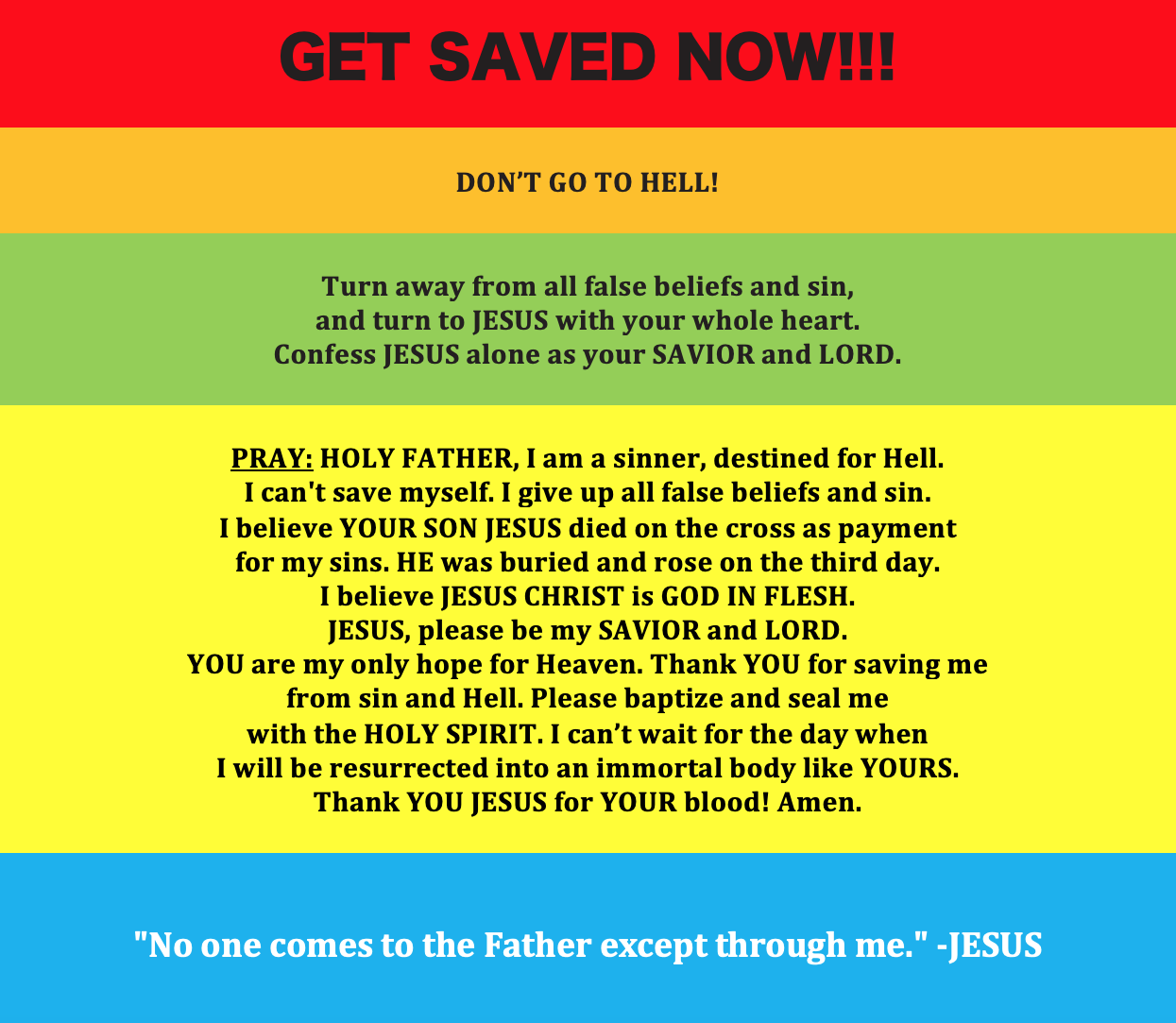 Believe that JESUS is GOD in the flesh. HE created you, and HE died on the cross to recreate you. In JESUS alone, you’re a new creation, free from sin and death, and fit for Heaven.
